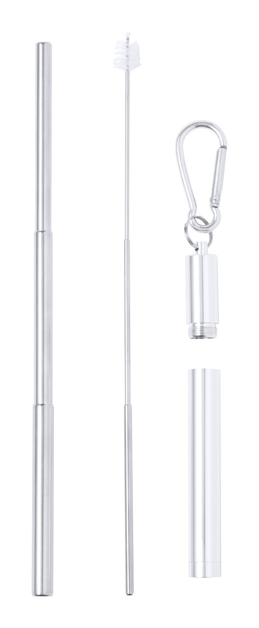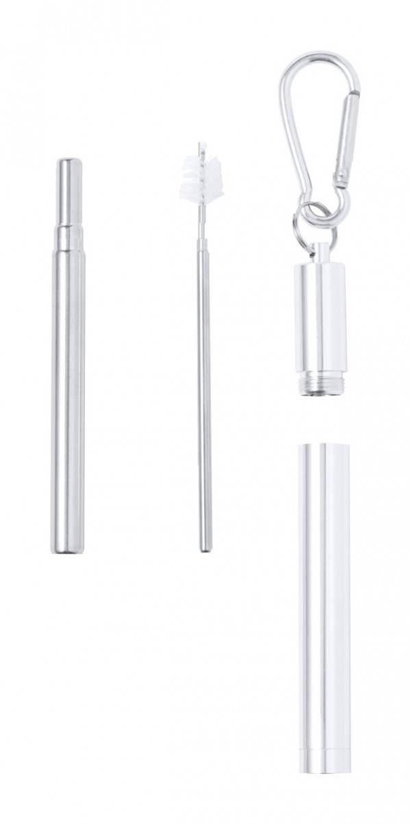 Paie de băut, reutilizabile, pliabile, din oțel inoxidabil, cu perie telescopică de curățare. În suport cu carabină.