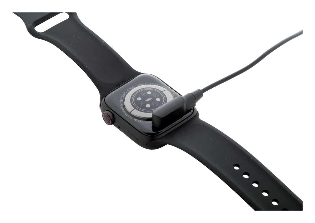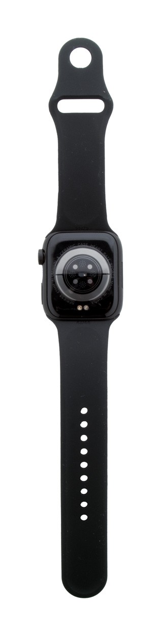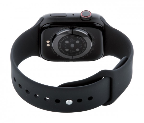 Ceas inteligent wireless multifuncțional în carcasă metalică cu ecran tactil TFT de 1,85", baterie reîncărcabilă de 180 mAh și curea din silicon. Are mai multe funcții inteligente și de monitorizare a sănătății, cum ar fi ritmul cardiac, tensiunea arterială și monitorizarea oxigenului, pe lângă multe altele. Poate fi conectat la smartphone-uri cu o aplicație gratuită disponibilă pentru iOS și Android. Include cablu magnetic de încărcare USB.