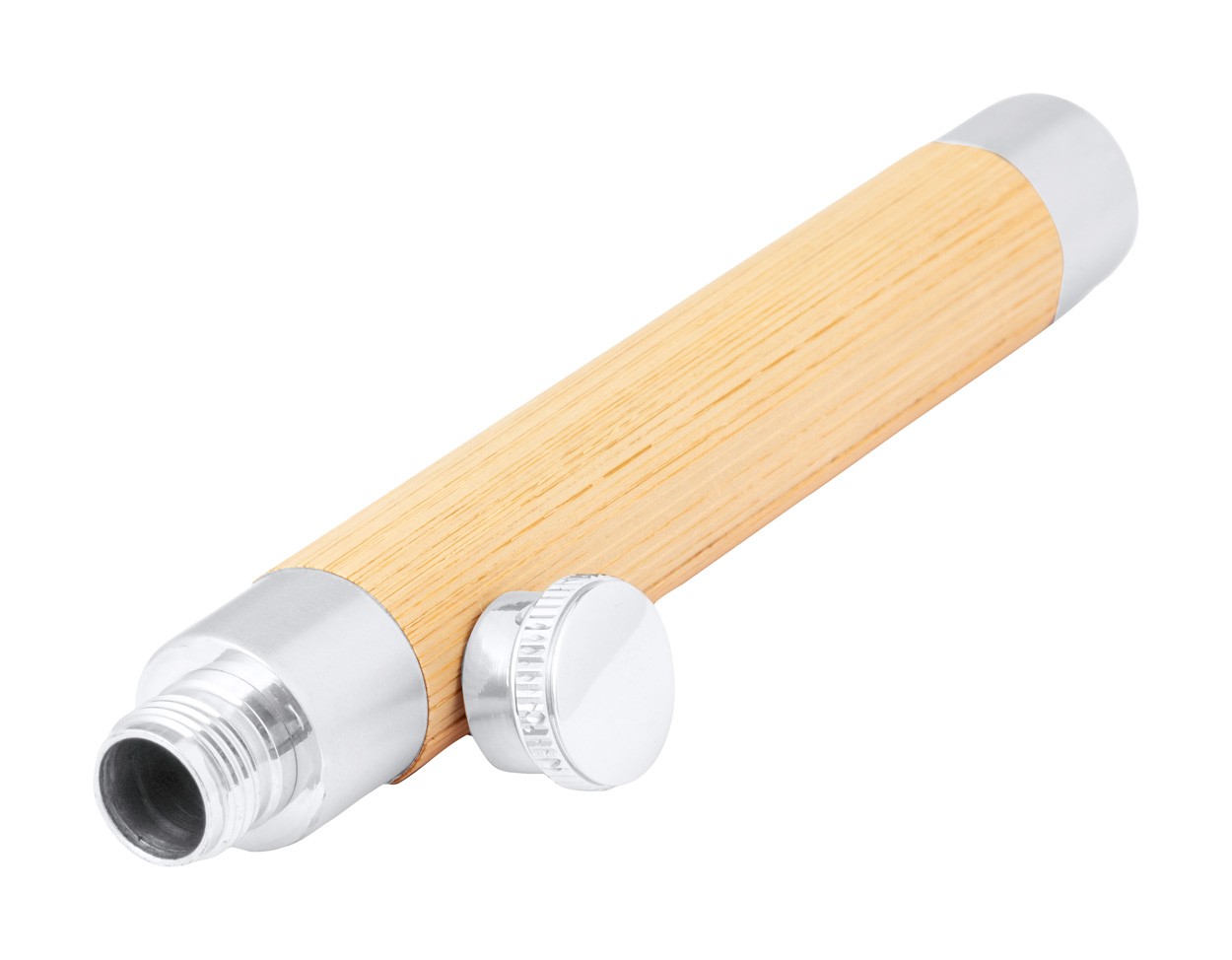 Termos de șold, din oțel inoxidabil, cu suprapunere de bambus, 45 ml.