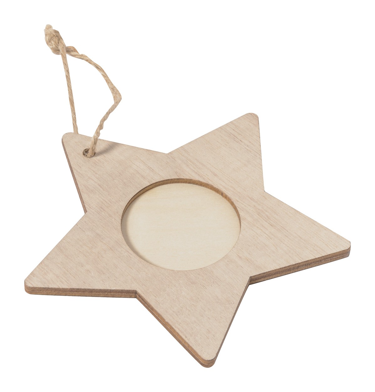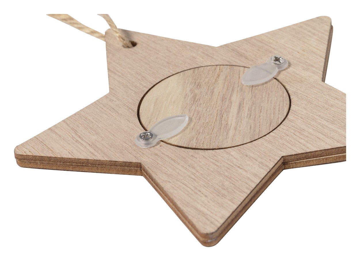 Ramă foto din lemn, tip ornament pentru brad de Crăciun, cu sfoară de iută, pentru fotografii 4×4 cm.