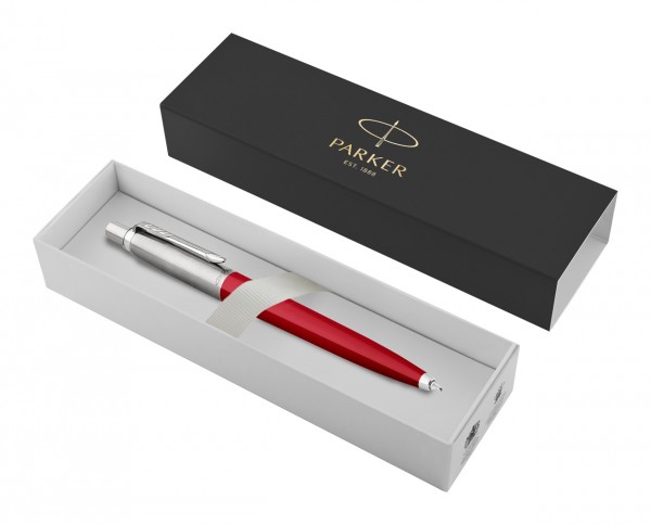 Pix retro din oțel inoxidabil și plastic ABS. Cu mină jumbo albastră, in cutie cadou. Produs marca Parker.