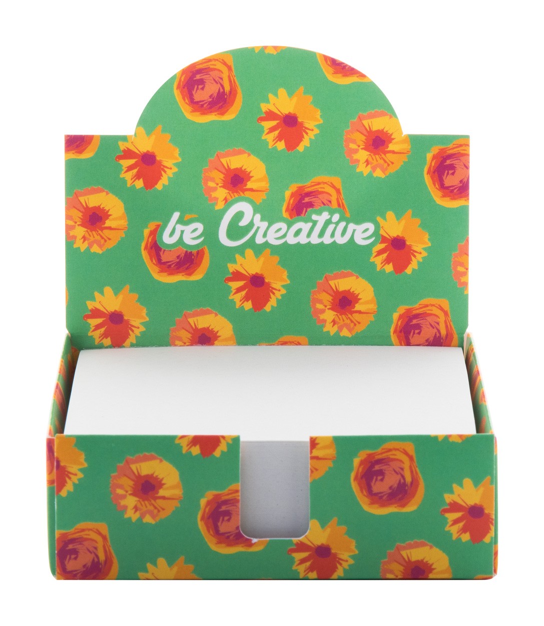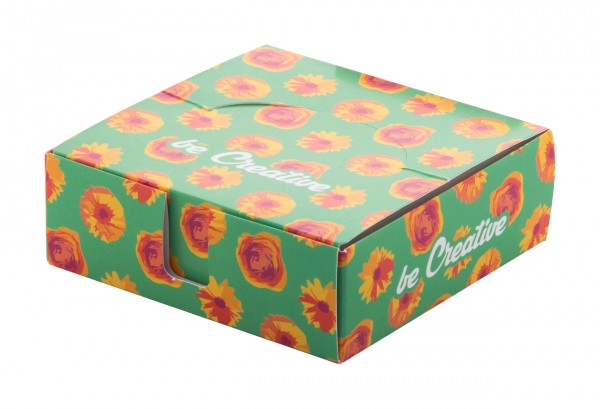 Dispenser de note de hârtie, la comandă, cu bloc de note de 300 de coli din hârtie reciclată (90×90 mm). Prețul include imprimarea color pe suport. MOQ: 100 buc.