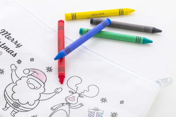 Penar de colorat, de Crăciun, din material nețesut RPET, cu închidere cu fermoar și 5 creioane colorate
