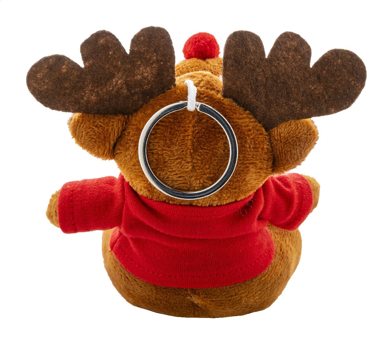 Breloc de Crăciun din pluș, ren cu tricou imprimabil.