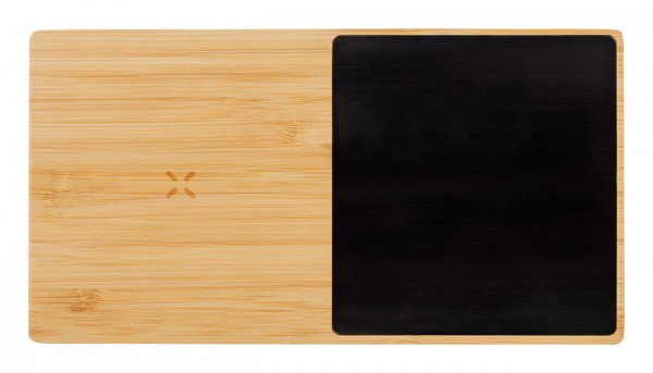 Încălzitor de pahare, din bambus, cu încărcător rapid fără fir încorporat (10W). Inclusiv cablu de încărcare USB.