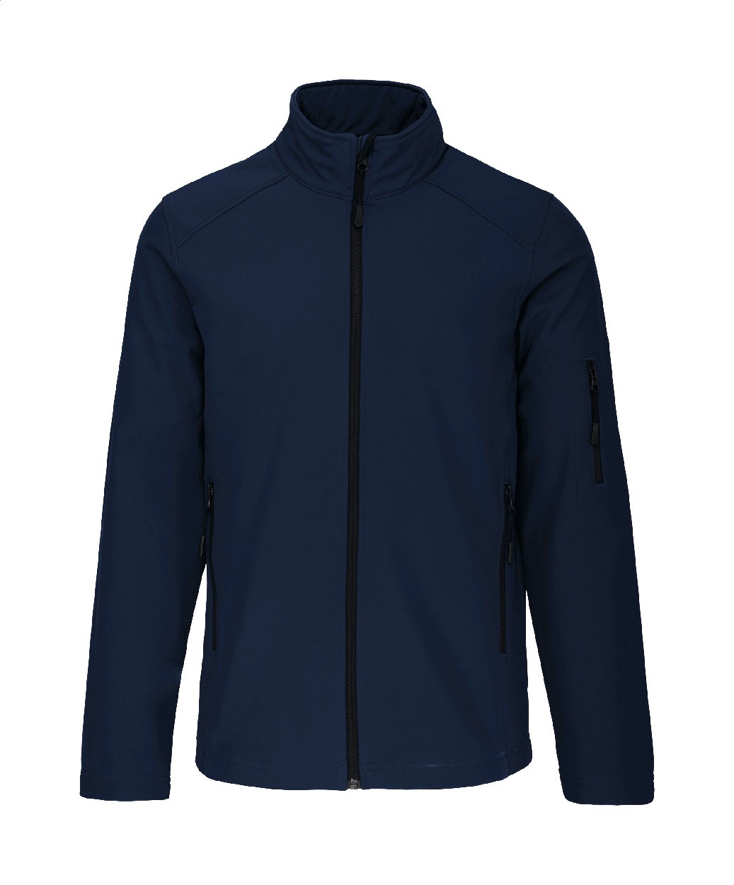 Jachetă softshell cu fermoar, triplu strat, respirabilă, rezistentă la vânt și impermeabilă, cu mâneci și buzunare laterale cu fermoar. Cu strat intermediar respirabil și strat interior din micro-polar fleece. 95% poliester și 5% elastan, 300 g/m². Produs marca Kariban.