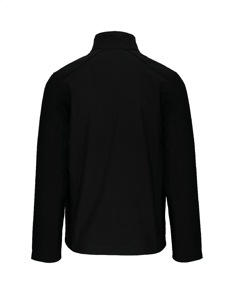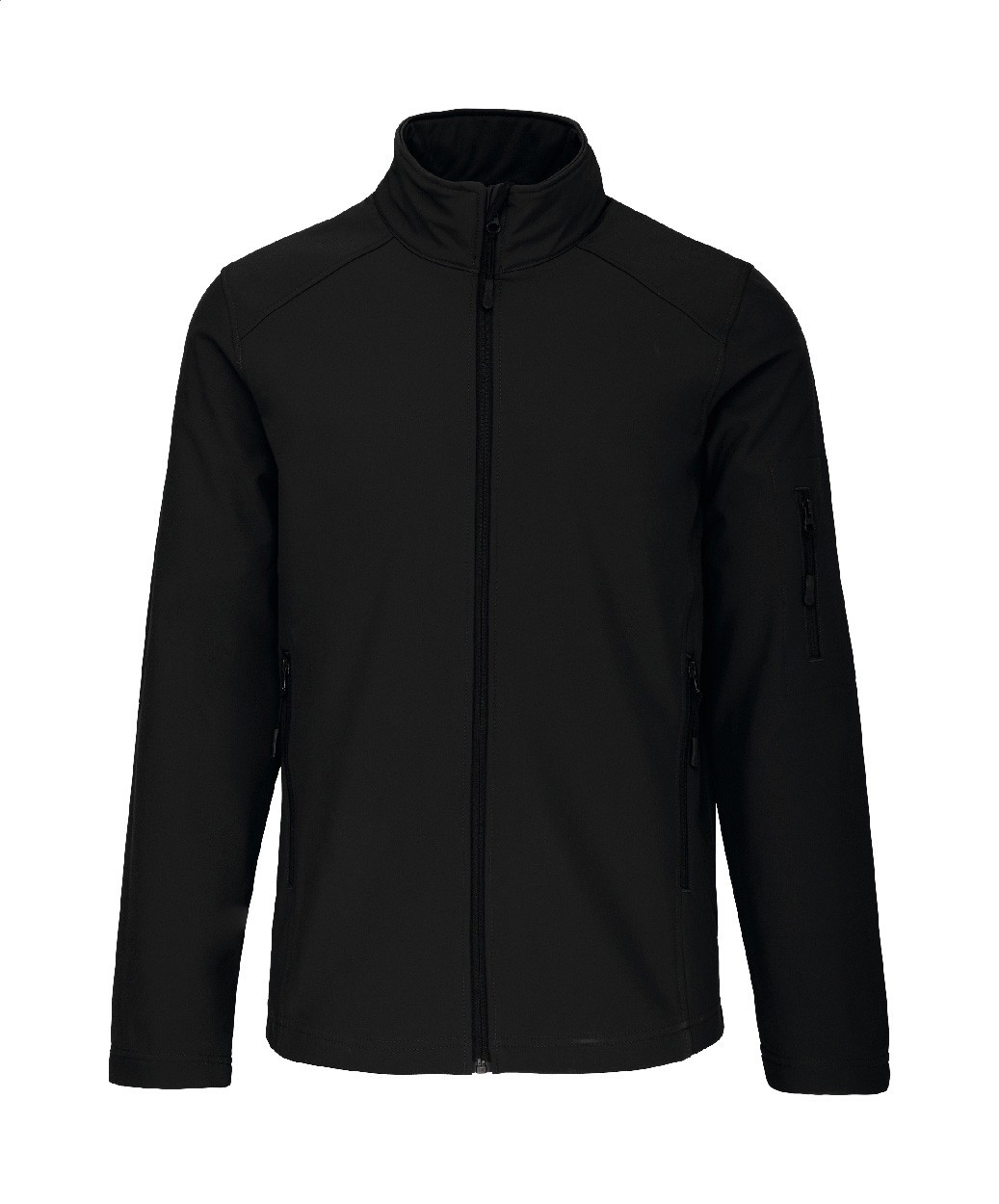 Jachetă softshell cu fermoar, triplu strat, respirabilă, rezistentă la vânt și impermeabilă, cu mâneci și buzunare laterale cu fermoar. Cu strat intermediar respirabil și strat interior din micro-polar fleece. 95% poliester și 5% elastan, 300 g/m². Produs marca Kariban.
