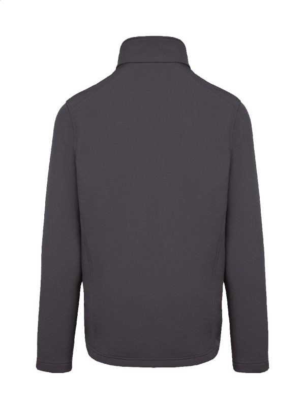 Jachetă softshell cu dublu strat, cu fermoar și buzunare laterale cu fermoar. Fermoare contrastante. Material hidrofug. Exterior: 95% poliester și 5% elastan. Interior: micro-polar fleece 100% poliester. 300 g/m². Produs marca Kariban.