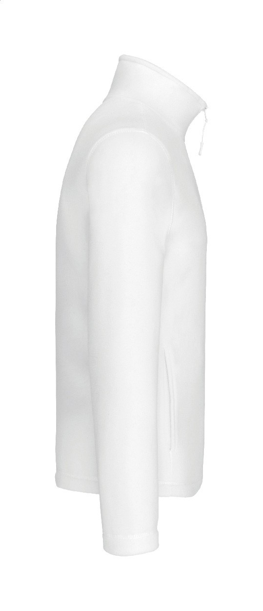 Jachetă din micro-polar fleece cu fermoar scurt, buzunare laterale și finisaj anti-scărpaturi. 100% poliester, 300 g/m². Produs marca Kariban.