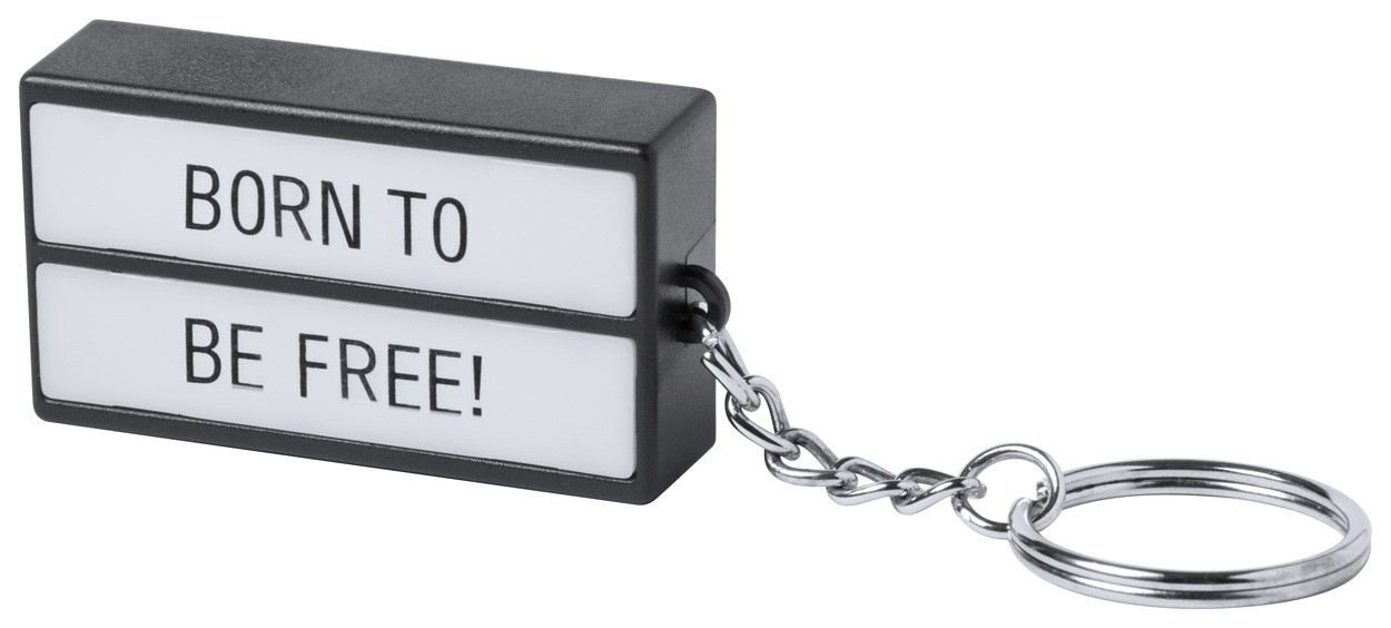 Breloc cu panou LED (10 LED-uri), cu 75 de caractere. Se livrează cu baterii.