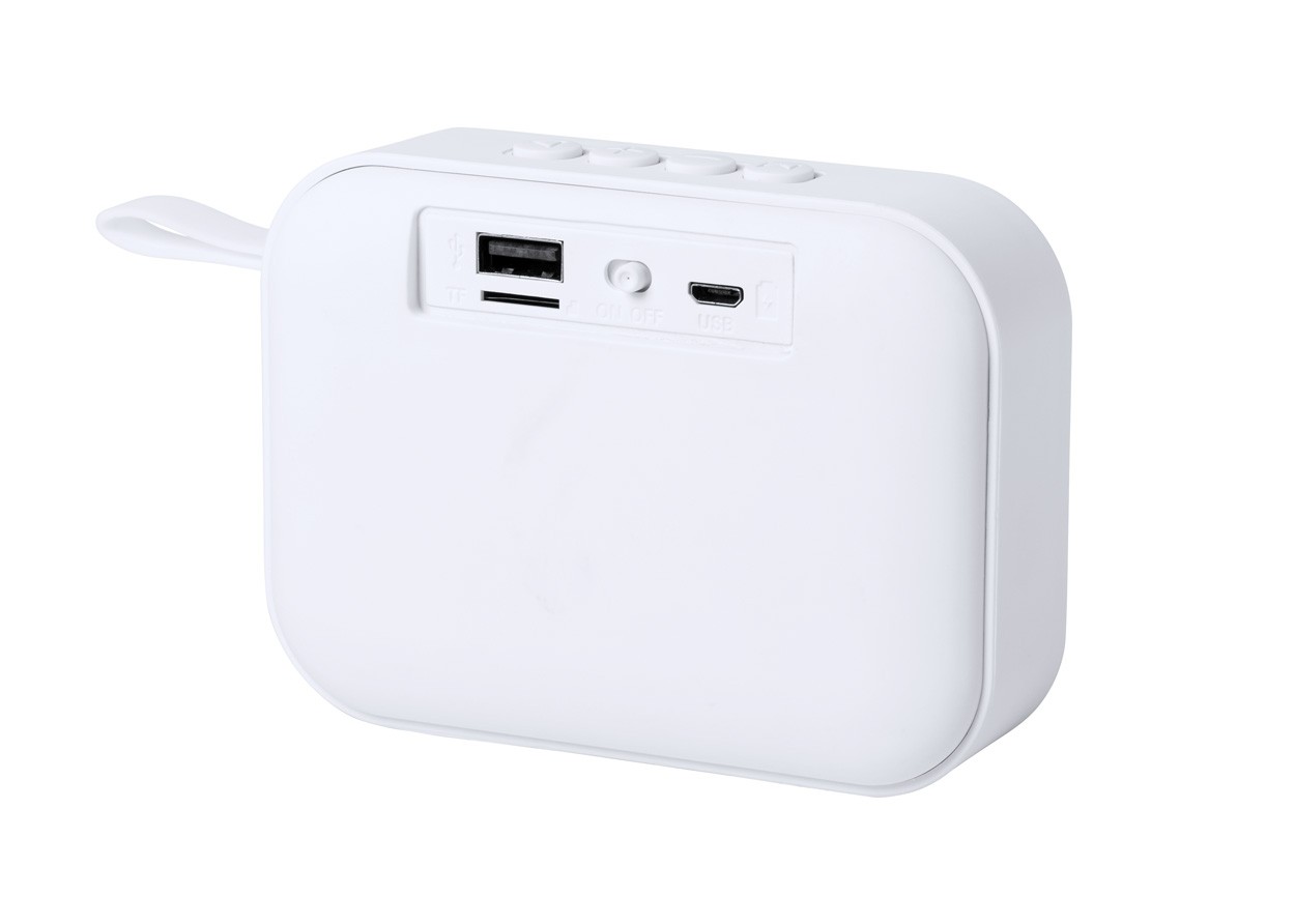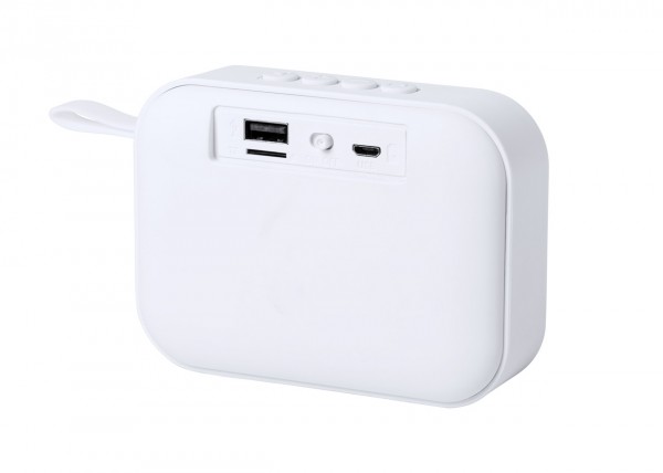 Boxă bluetooth cu funcție hands-free, radio FM, USB și micro SD player. Carcasă din plastic , pânză difuzoare din poliester și cu baterie reîncărcabilă. Se livrează cu cablu de încărcare USB.