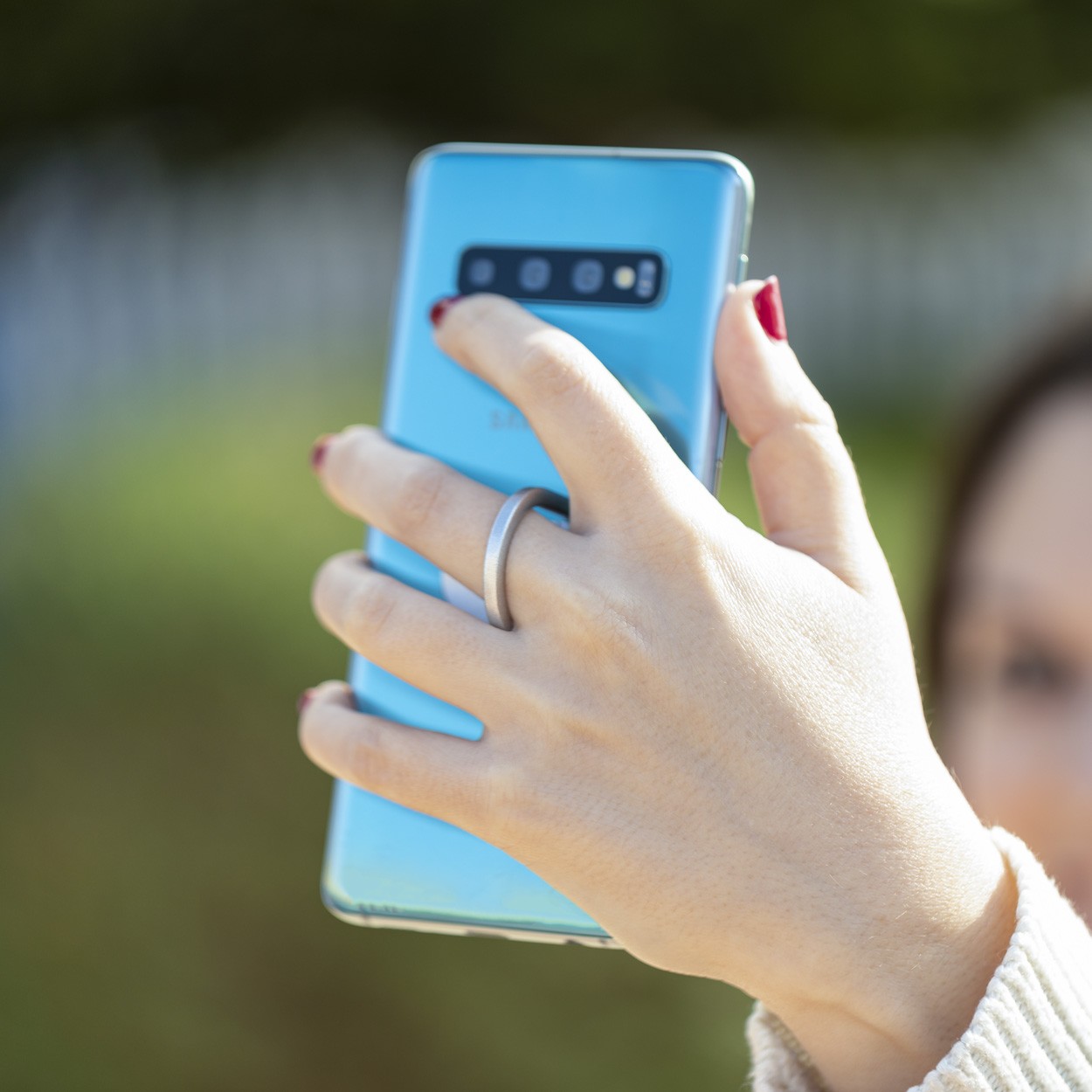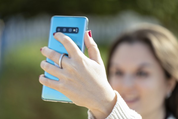 Inel metalic suport pentru mobil cu bază autoadezivă.