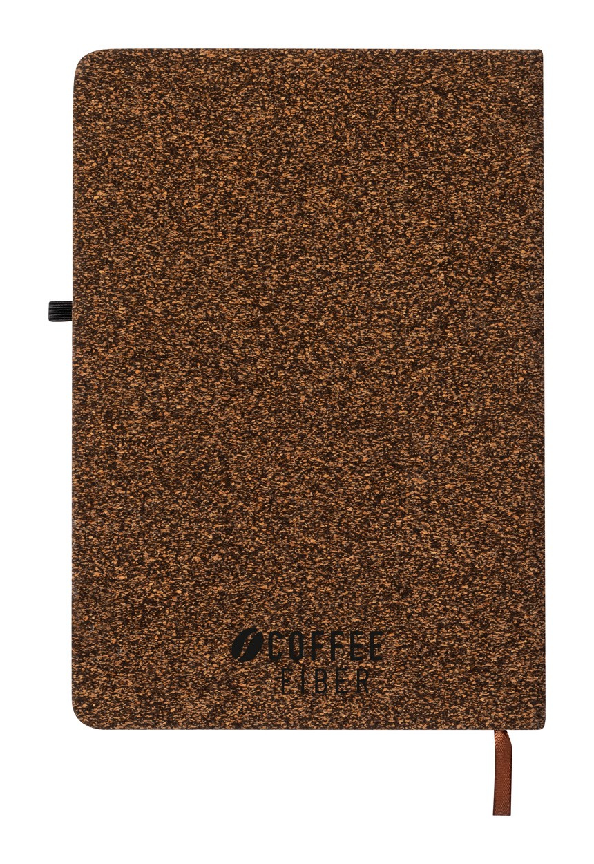 Agendă cu copertă din fibre de cafea și plută naturală, cu 80 de voi veline, din hârtie kraft reciclată și suport pentru pix. Dimensiune A5.