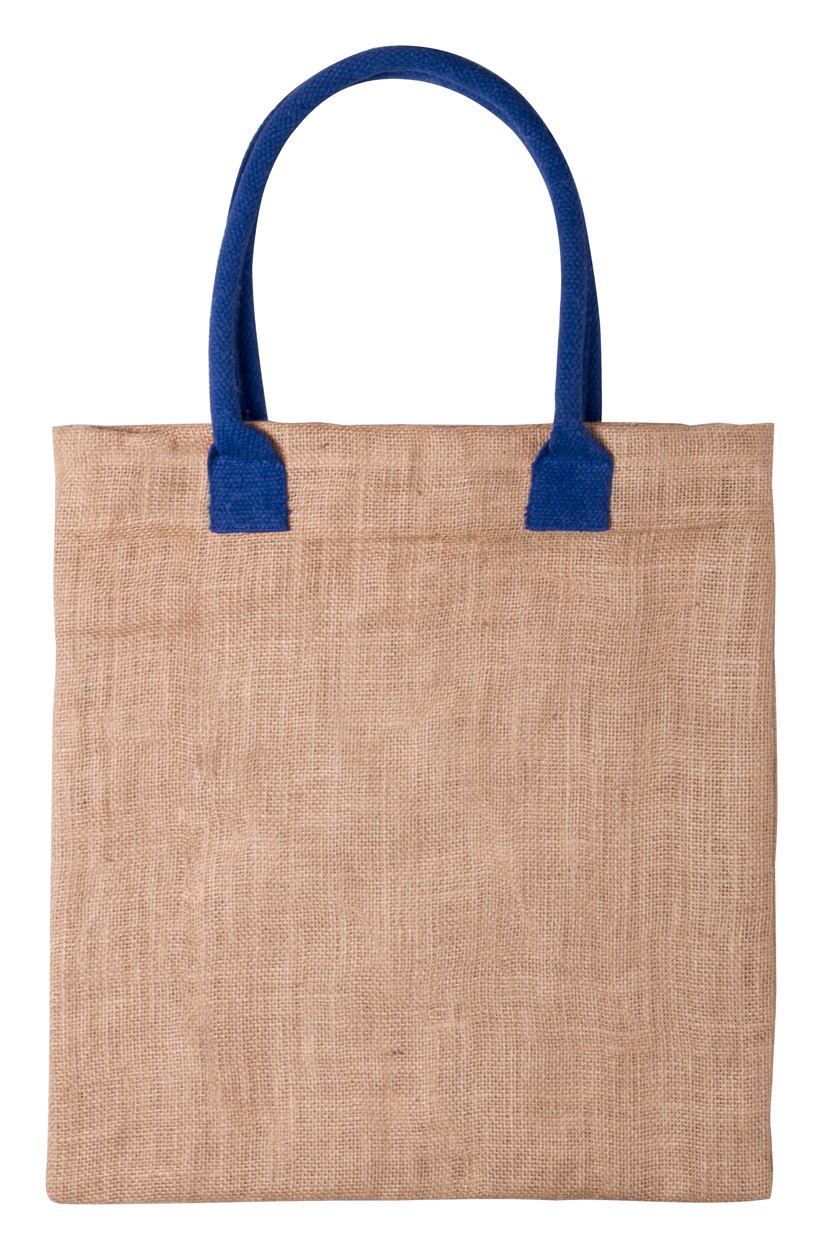 Sacoșă pentru cumpărături din iută, cu mânere colorate.