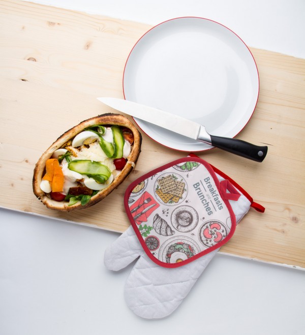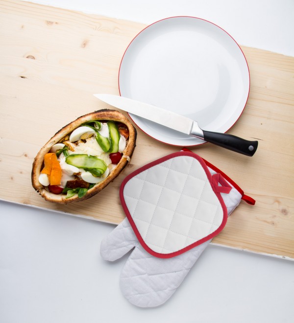 Șervet de bucătărie (1 buc) cu marginea colorată, din poliester. Ideal pentru sublimare.