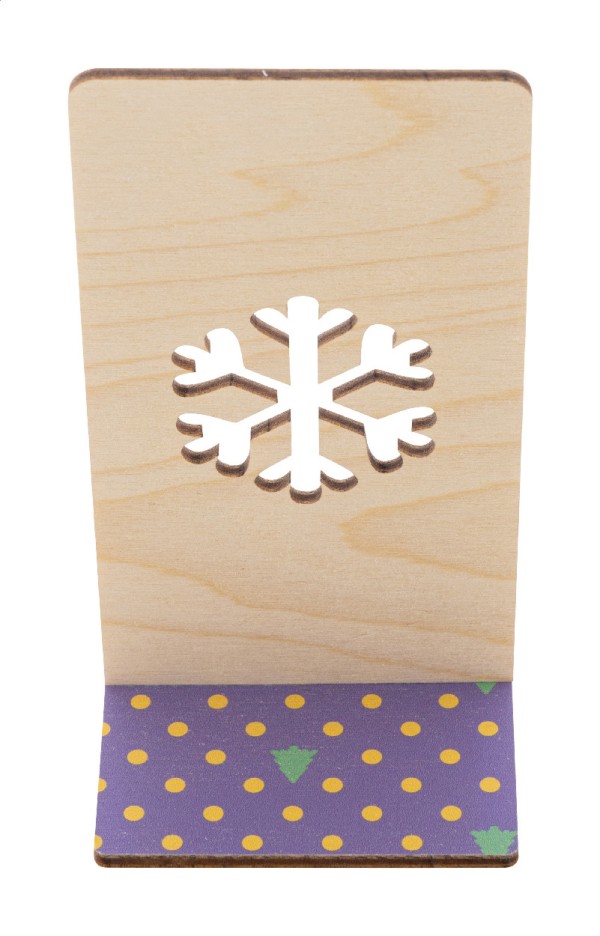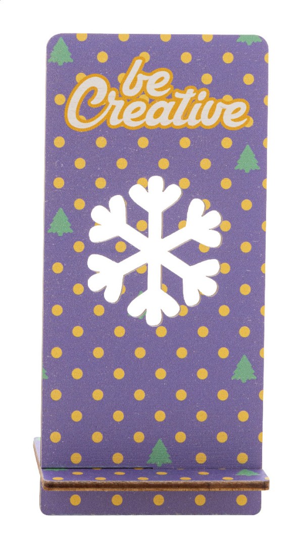 Suport de telefon mobil pentru birou, realizat la comandă, imprimat color, din placaj de mesteacăn, cu motiv de Crăciun decupat. Prețul include imprimare UV LED pe partea frontală. Livrat ambalat plat. MOQ: 50 buc.