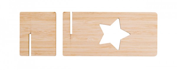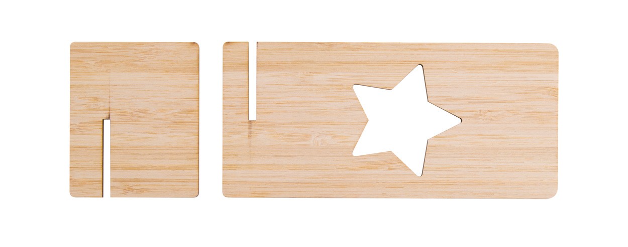 Suport telefon mobil, de birou, din placaj de bambus cu motiv de Crăciun traforat. Livrat ambalat plat.