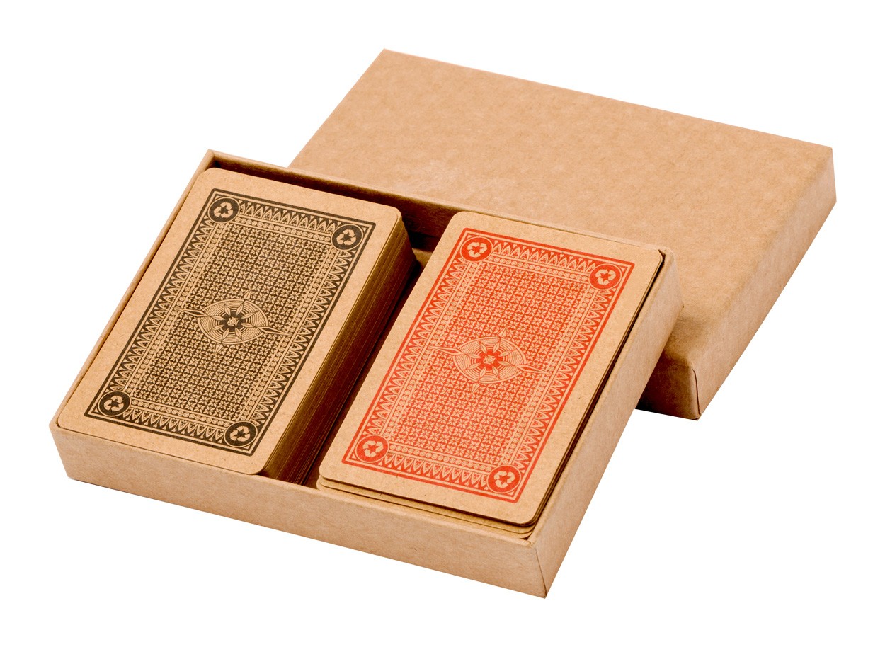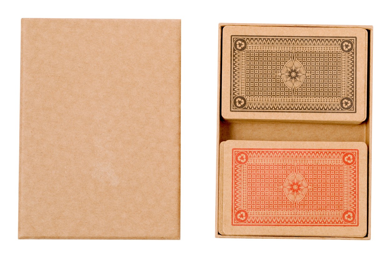 Recycled cardboard playing card set with Spanish (50 pcs) and French (54 pcs) playing cards, in kraft paper box.