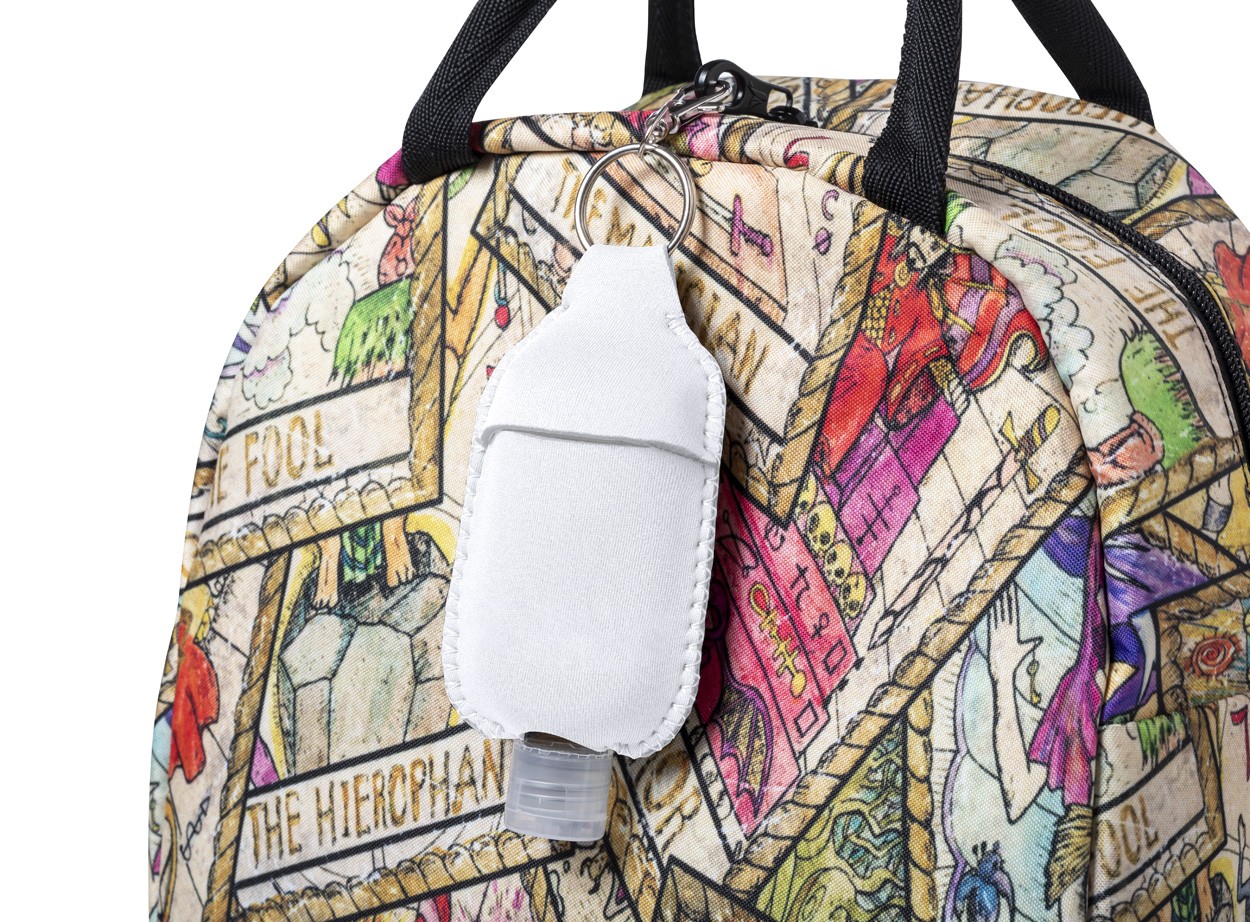 Suport gel de curățare a mâinilor Softshell cu carabină metalică. Livrat fără sticlă.