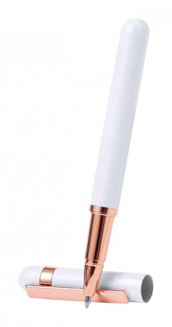 Pix roller din aluminiu, cu capac, detalii din plastic, cu finisaj cupru. Cu mină jumbo albastră.