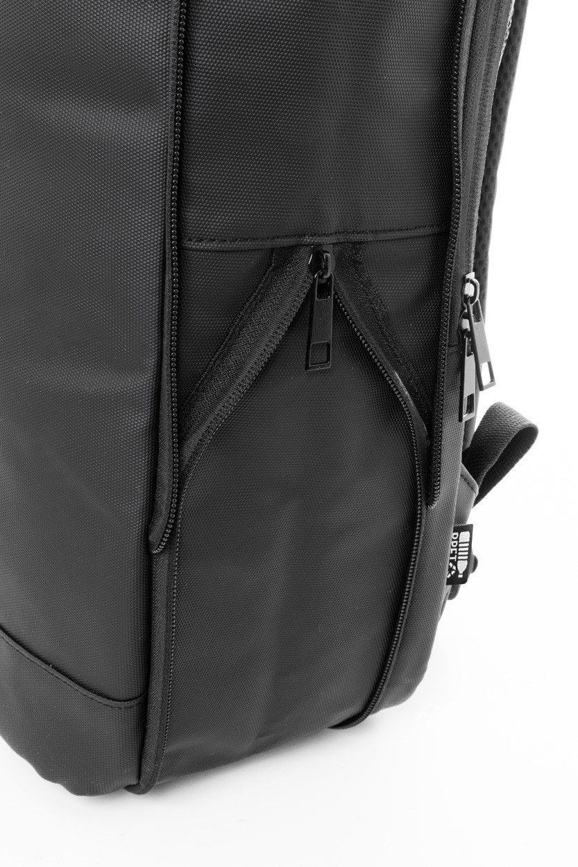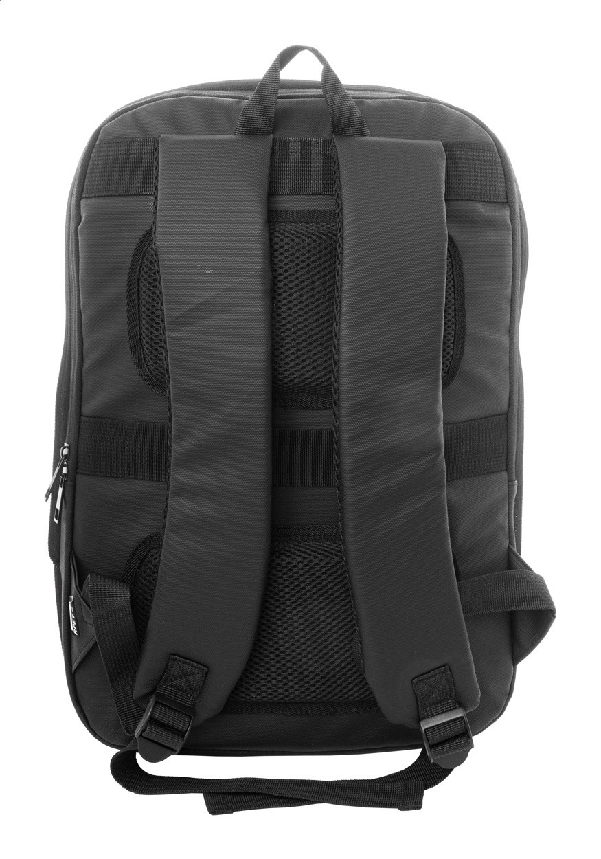 Rucsac extensibil, RPET, rezistent la apă, cu compartiment principal cu fermoar, buzunar frontal cu fermoar și compartiment căptușit pentru laptop (15"). Cu curea pentru cărucior, spate și curele de umăr căptușite. Poliester 600D RPET acoperit cu PU, cu etichetă distinctivă RPET.