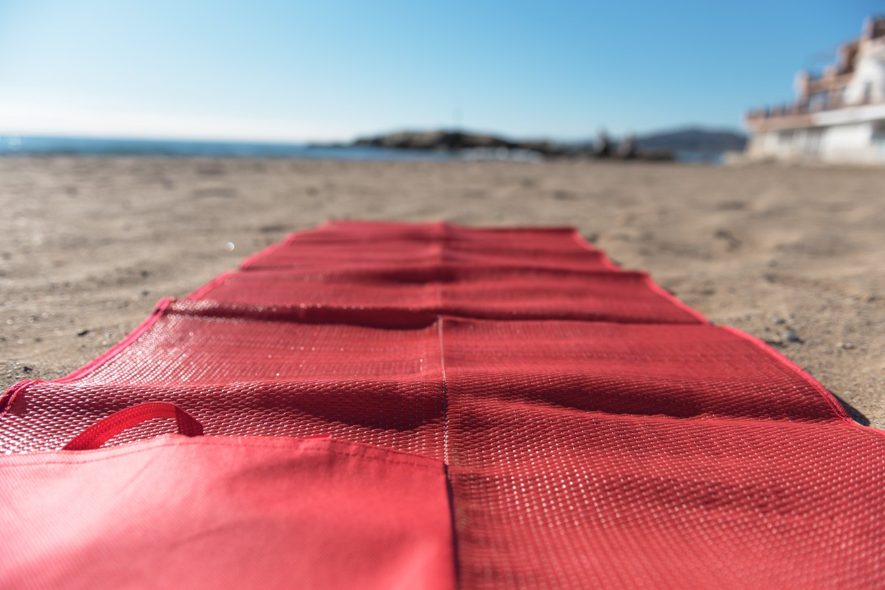 Rogojină pliabilă pentru plajă, din plastic împletit.
