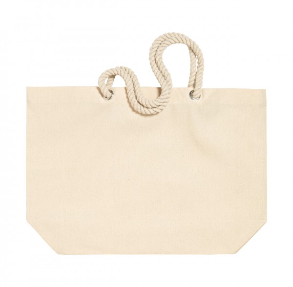 Geantă de plajă, din bumbac, cu mânere împletite. 100% bumbac, 220 g/m².