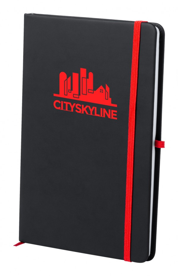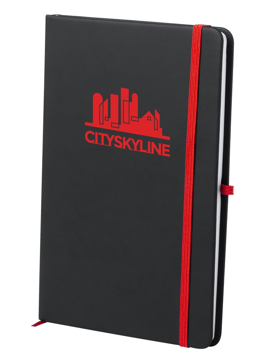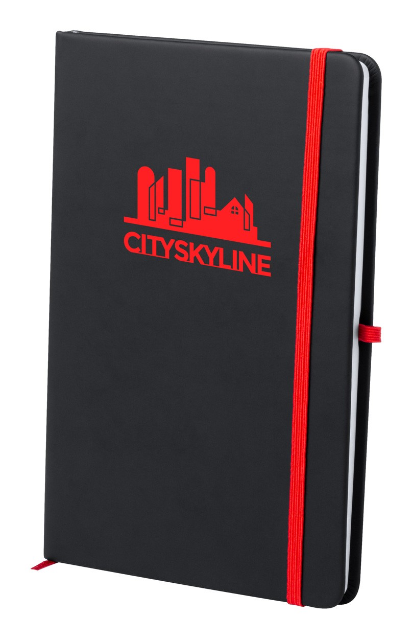 Carnețel cu copertă din înlocuitor piele, cu 100 file dictando, semn de carte și curea de cauciuc. Copertă specială pentru gravură.