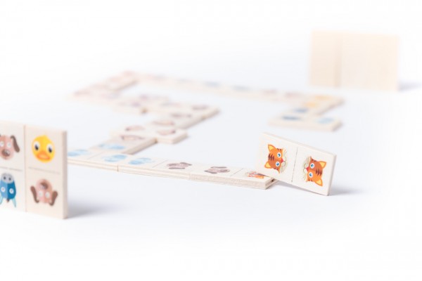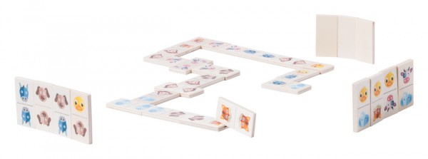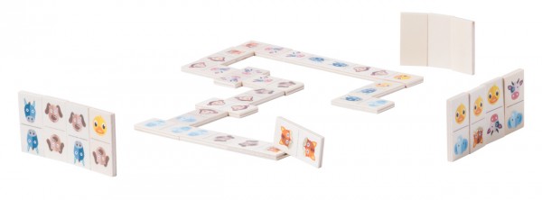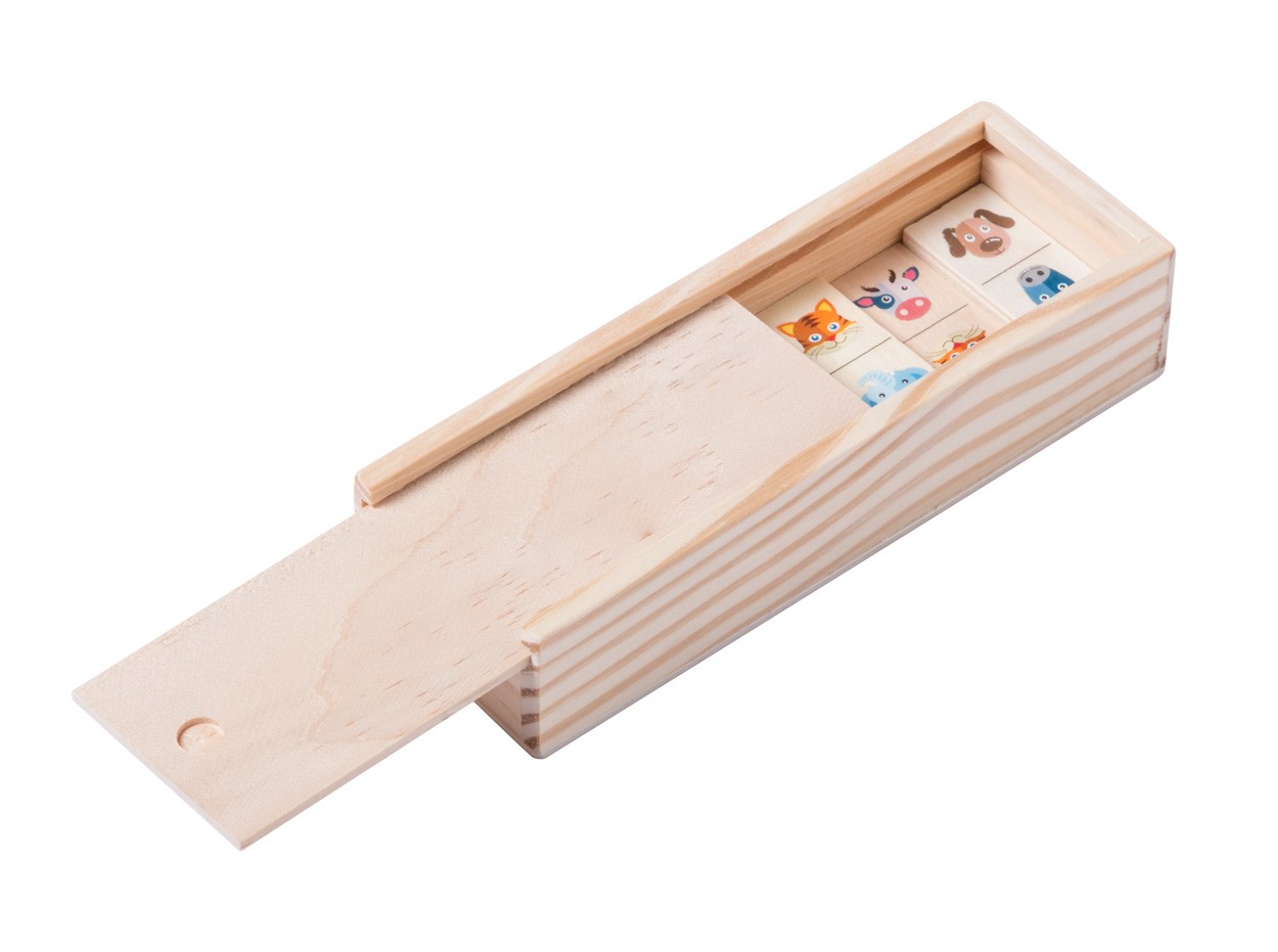 Domino (28 buc) cu figurine animale, în cutie de lemn.