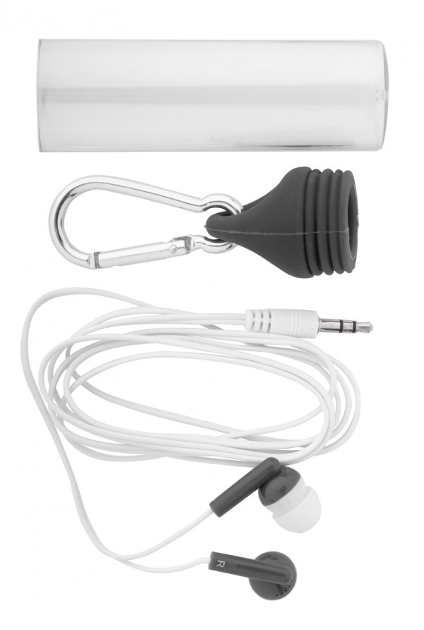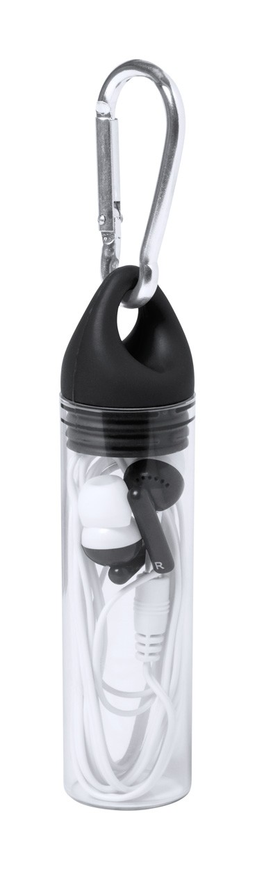 Căști cu cablu Jack 3,5 mm, în cutie din plastic, cu carabină, capac colorat.