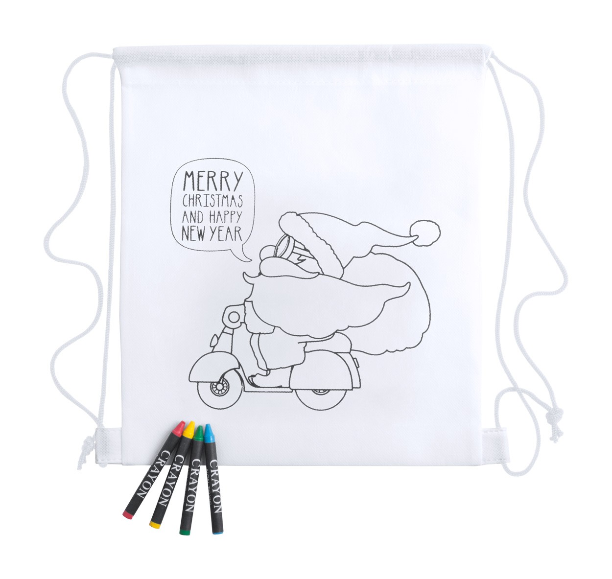 Rucsac de colorat cu model de Crăciun pentru copii, cu 4 creioane cerate, din material nețesut 80 g / m².