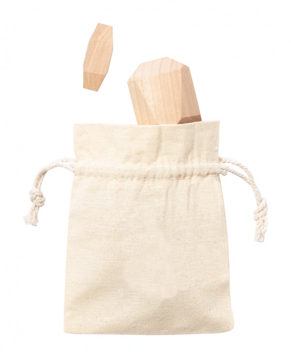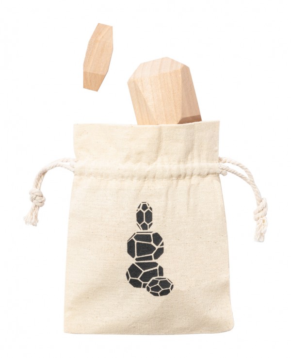 joc de îndemânare din lemn, 4 bucăți, în husă de bumbac, cu șnur.