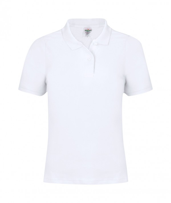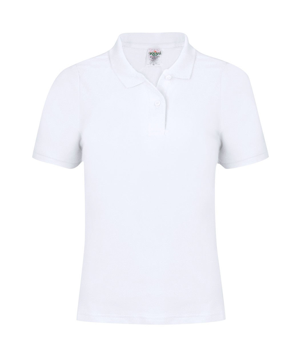 Women white polo shirt with 2 buttons in 100% pique cotton, 180 g/m². Keya brand product.