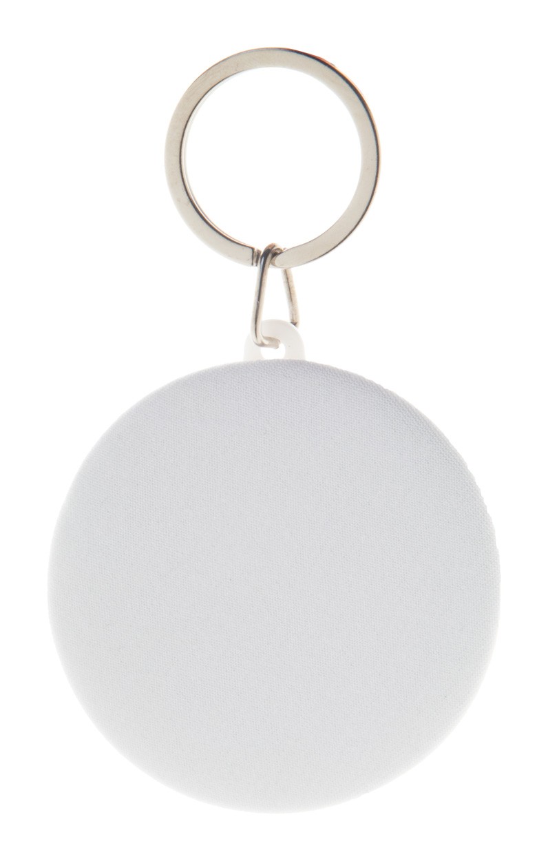 Breloc tip pin, cu capac din microfibră RPET color. Pretul include imprimarea prin sublimare. MOQ: 100 buc