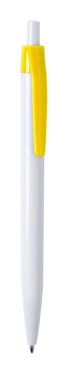 Pix din plastic cu corp alb și clips colorat. Mină albastră.