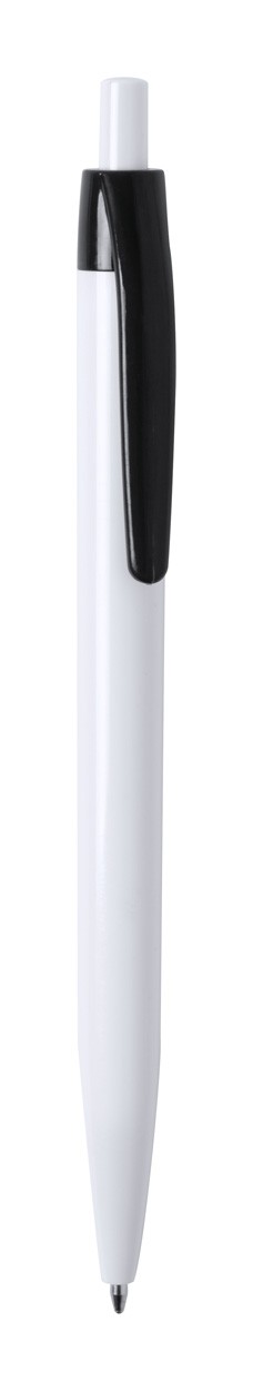 Pix din plastic cu corp alb și clips colorat. Mină albastră.