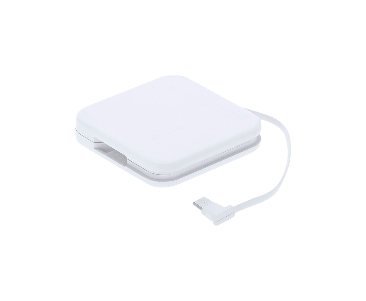 Baterie externă, cu USB din plastic ABS, cu baterie de 1200 mAh. Cu porturi de intrare și ieșire USB-C. Cu cablu de încărcare USB-C integrat.