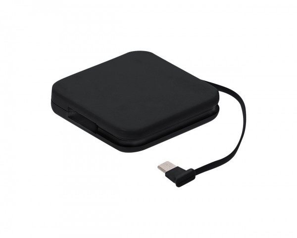 Baterie externă, cu USB din plastic ABS, cu baterie de 1200 mAh. Cu porturi de intrare și ieșire USB-C. Cu cablu de încărcare USB-C integrat.