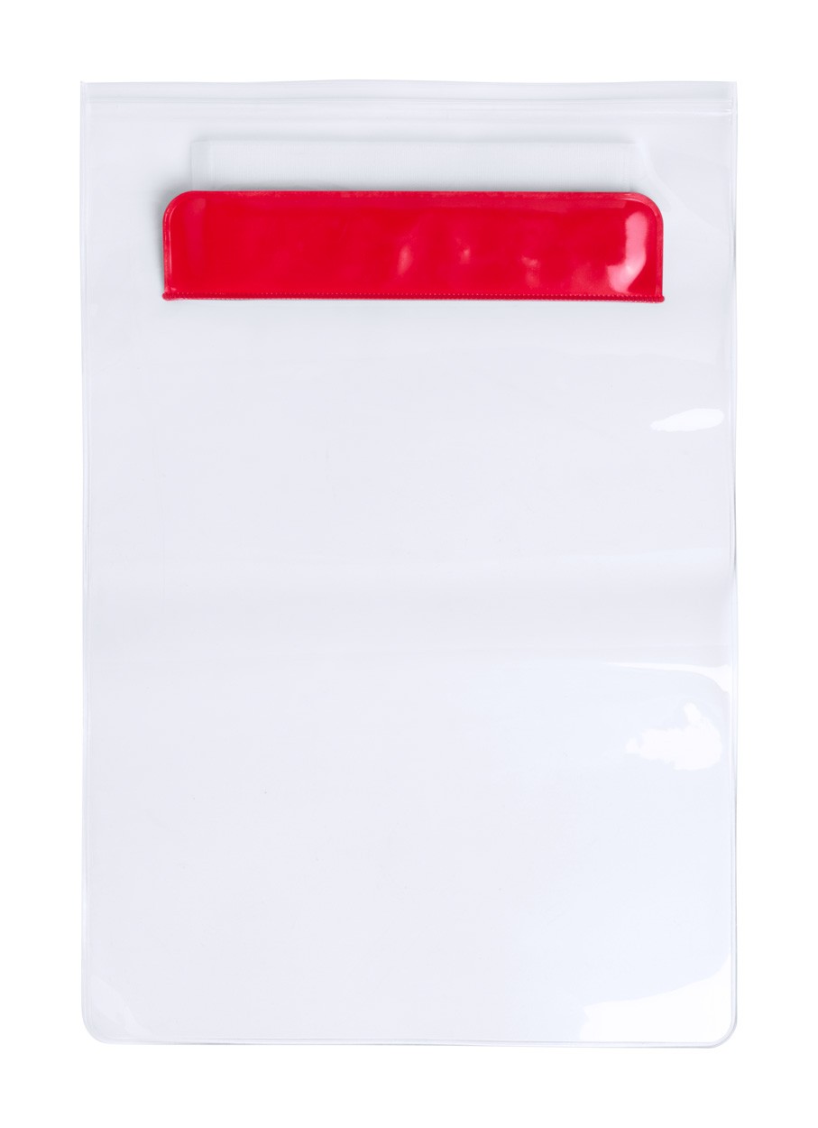 Husă impermeabilă pentru tabletă din plastic transparent.