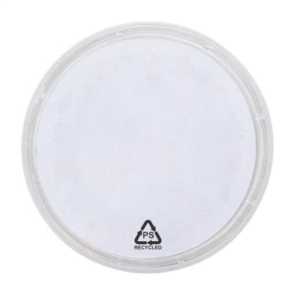 Joc labirint rotund, din PS reciclat, cu trei bile metalice. Cu inserție personalizată din hârtie color. Prețul include imprimare digitală pe ambele părți. MOQ: 100 buc.