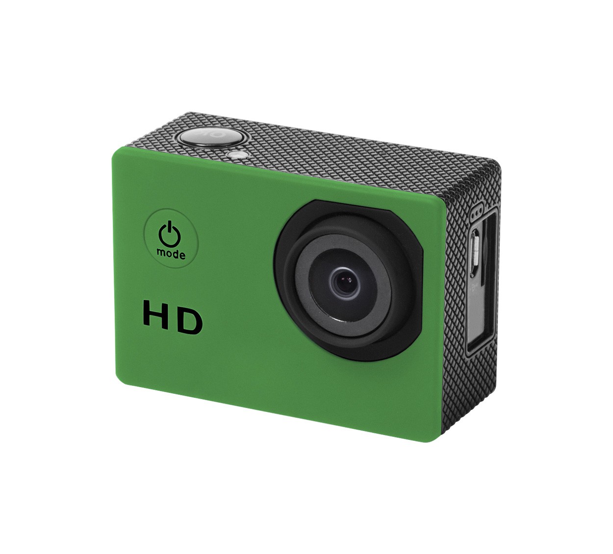 Cameră video sport din plastic, cu rezolutie HD 720p, 2 ", ecran LCD și baterie reîncărcabilă. 14 accesorii și cablu de încărcător USB.