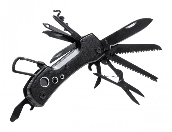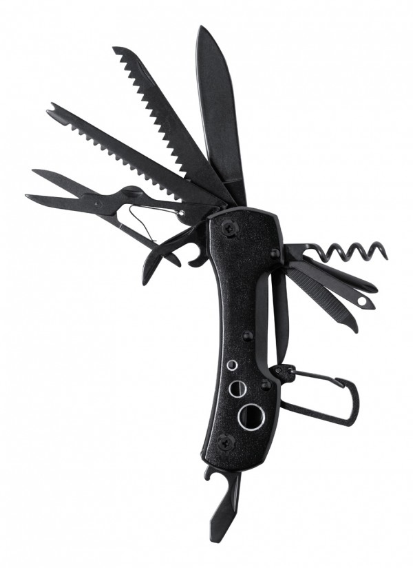 Briceag de buzunar multifuncțional, din oțel inoxidabil, cu mâner din aluminiu și 13 funcții.