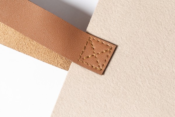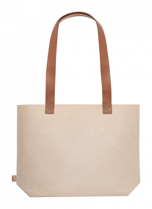 Sacoşă de cumpărături, din pâslă RPET, cu mânere lungi din piele PU și burduf inferior. Cu etichetă distinctivă RPET.