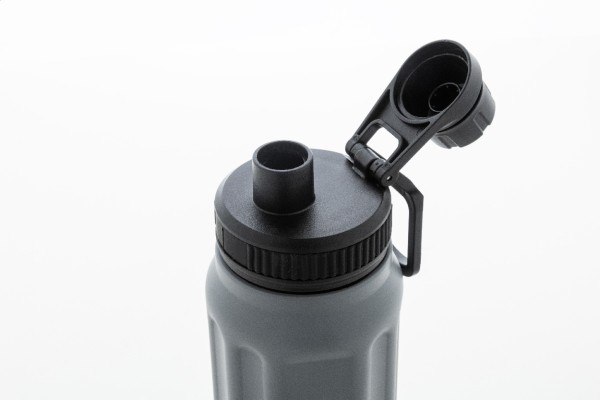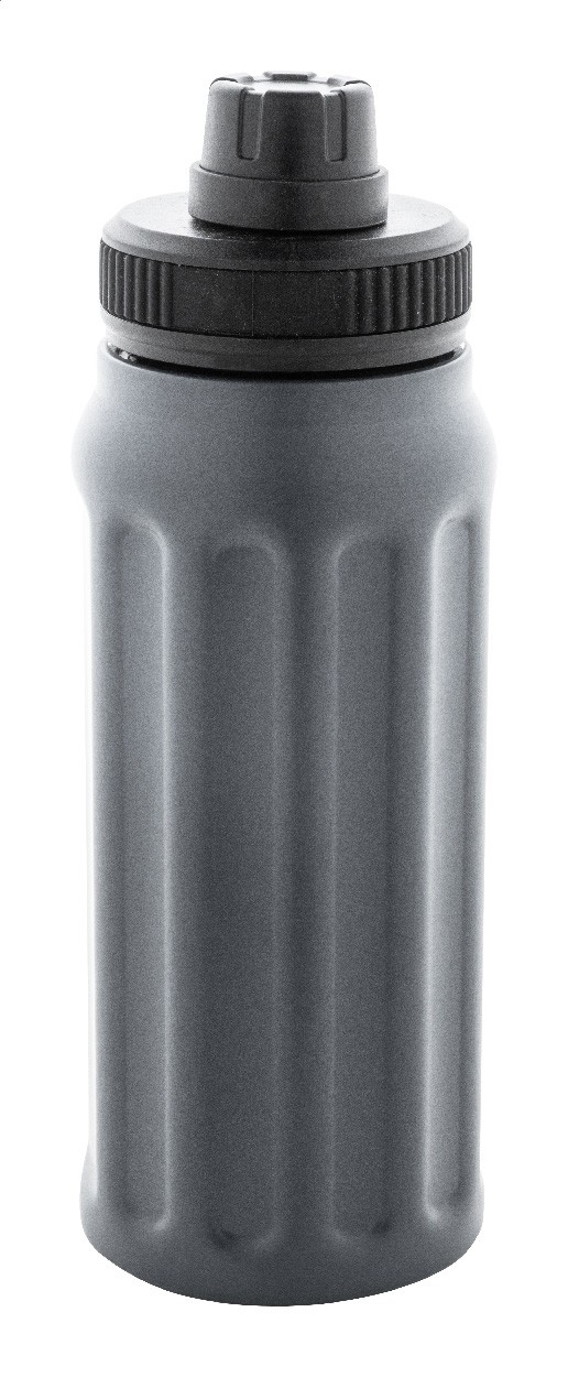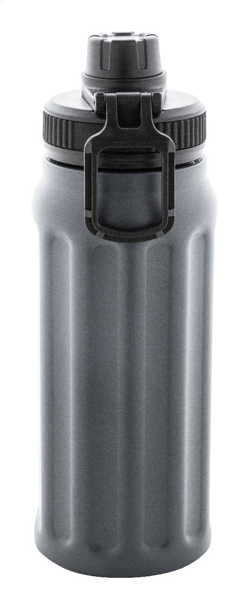 Sticlă termică cu perete dublu, din oțel inoxidabil reciclat, cu caneluri verticale. Dispune de un capac din PP cu mâner de transport integrat. 540 ml.