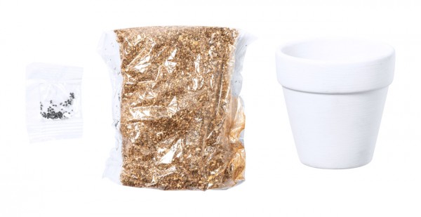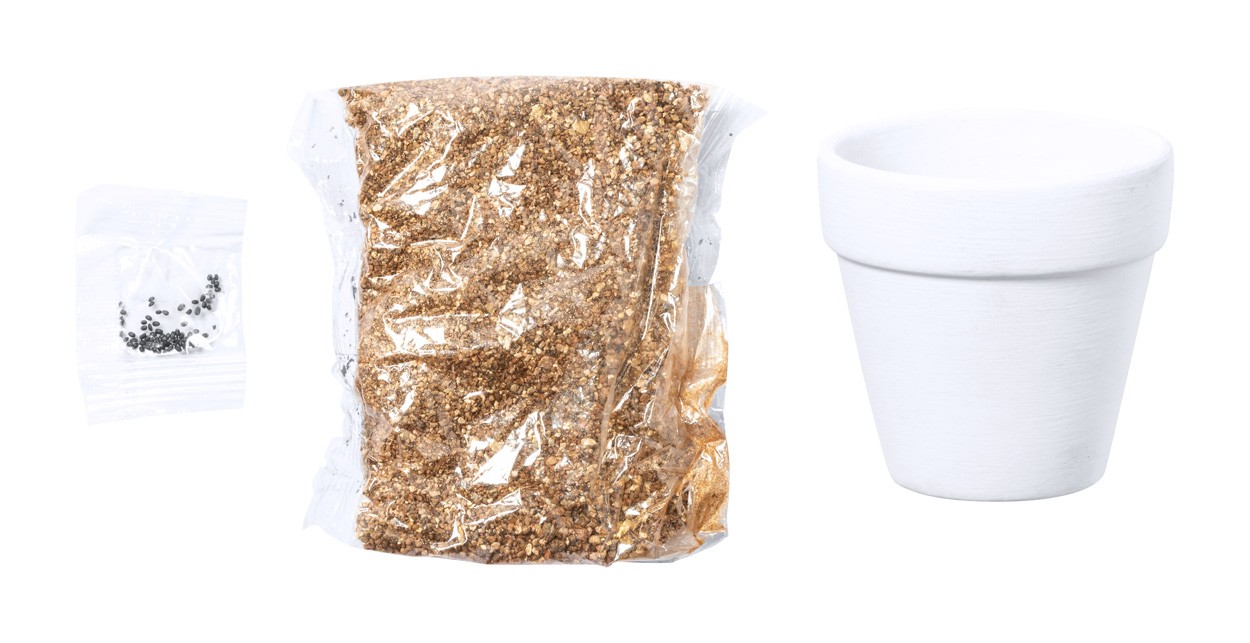 Kit de plantare de flori, în ghiveci de teracotă, cu semințe de cactus și substrat de creștere.