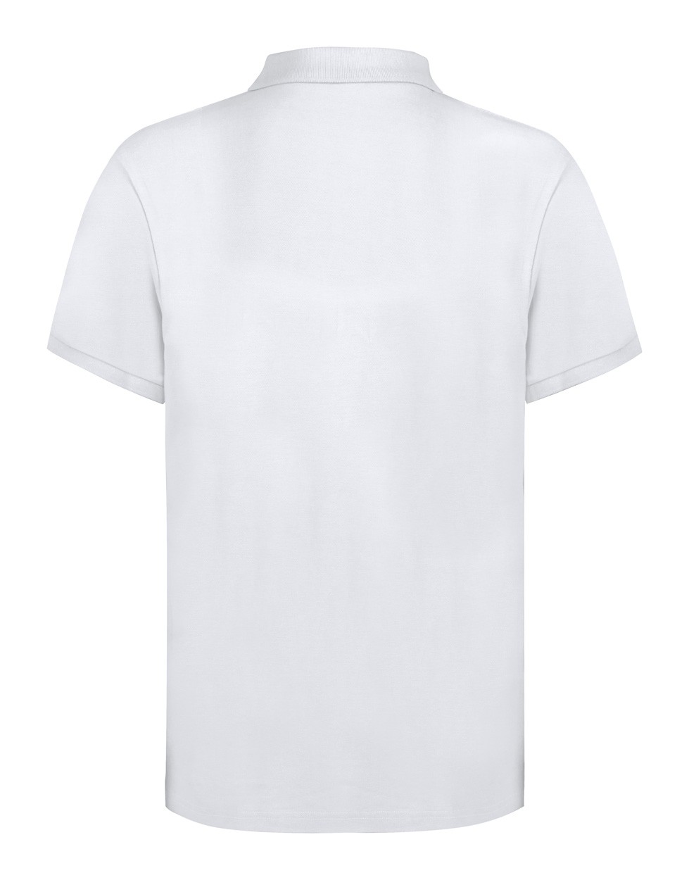 Tricou polo piqué , alb, cu doi nasturi de culoare asortați. 100% bumbac ringspun, 220 g/m².