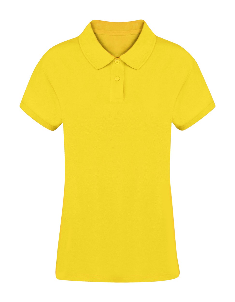 Tricou polo piqué, de damă, cu doi nasturi de culoare asortați. 100% bumbac ringspun, 220 g/m².