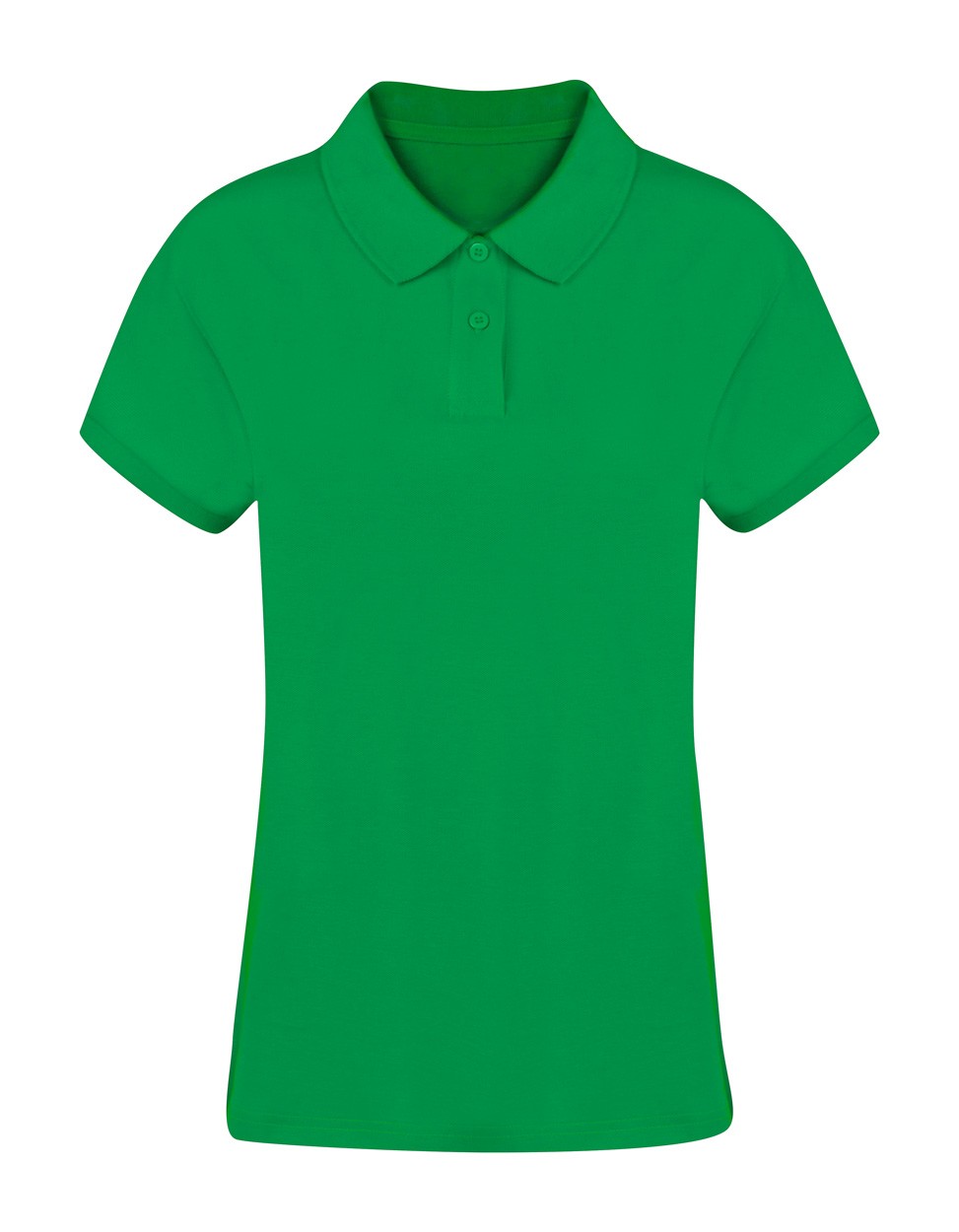 Tricou polo piqué, de damă, cu doi nasturi de culoare asortați. 100% bumbac ringspun, 220 g/m².