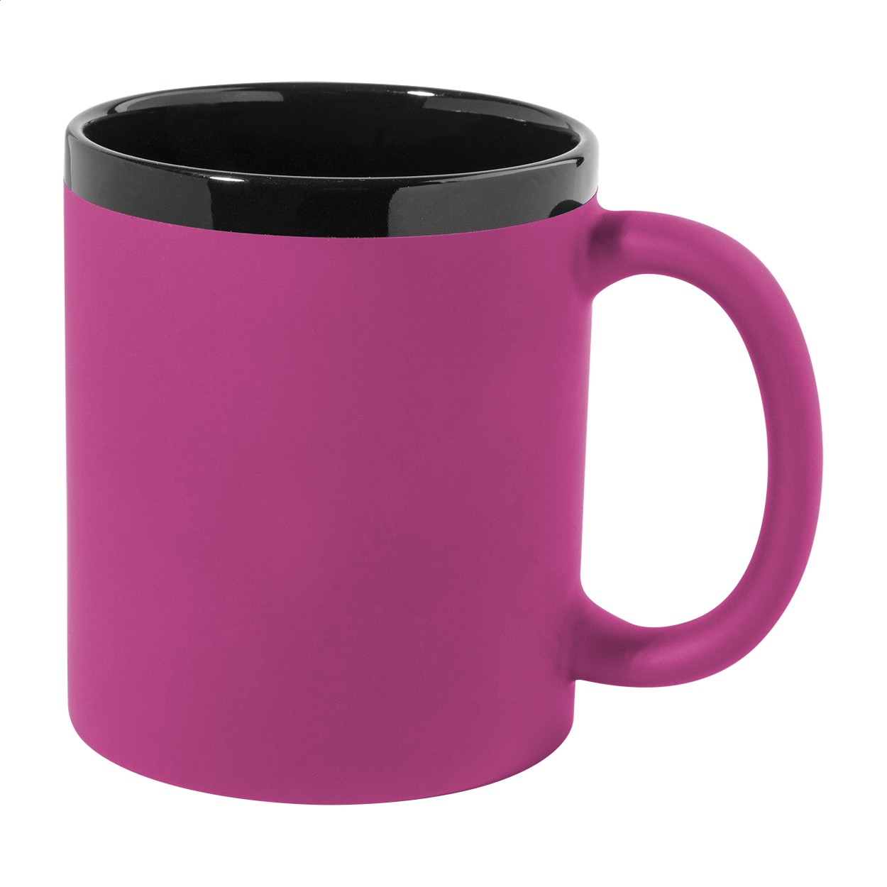 Cana din ceramică, cu finisaj cauciucat moale la atingere și interior și margine negre, 300 ml. Cu acoperire specială pentru gravare, logo-ul gravat se potrivește cu culoarea interiorului. În cutie din hârtie kraft.