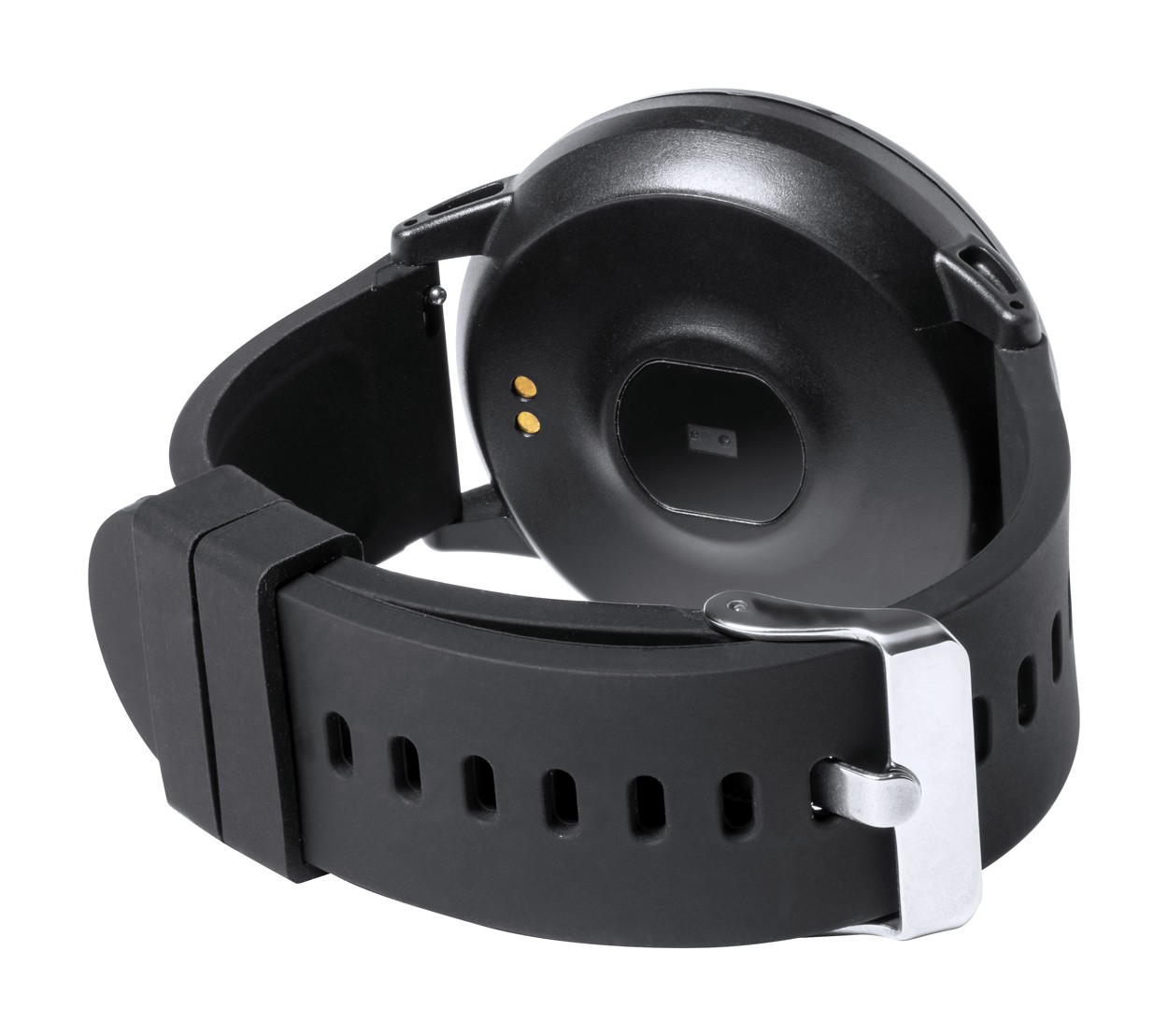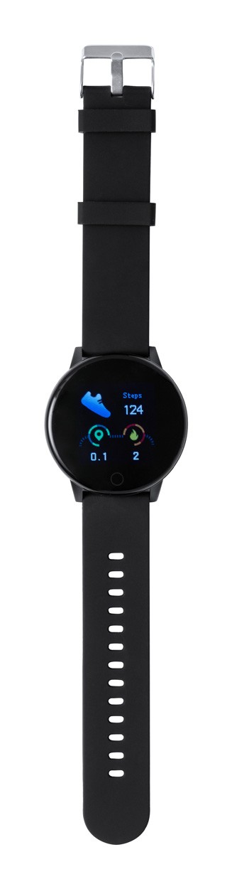 Ceas inteligent bluetooth, multifuncțional, cu ecran tactil LCD de 1,3 inchi, baterie reîncărcabilă de 180 mAh și curea TPU. Are mai multe funcții inteligente de monitorizare a sănătății și monitorizare, cum ar fi monitorizarea ritmului cardiac, a tensiunii arteriale și a oxigenului, apeluri bluetooth, prognoza meteo și monitorizarea somnului pe lângă multe altele. Poate fi conectat la smartphone-uri cu o aplicație gratuită disponibilă pentru iOS și Android. Inclusiv cablu de încărcare USB.